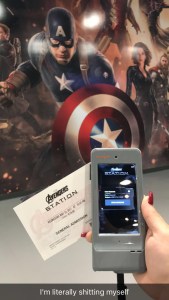 First stop on the list: MARVELS AVENGERS STATION. Anyone who knows me should know that I love Iron Man and the Avengers so I’m sure you can imagine my excitement (probably not, but you can try). In this self-guided tour, I was given a device that gave me insight into every avenger, and I had to take an assessment on each one in order to finally become a “Station Agent”. The whole experience was AWESOME. I got to see all of Iron Man’s, Hawkeye and Black Widow’s, and Captain America’s suits! I also got to have my brain read through Iron Man’s mask!! During that simulation, the computer scans my eyes and brain (?) and then I flew through the desert and had to kill the targets by blinking twice. It was so awesome! After the tour is over and you’re in the gift shop, they have another virtual reality part where you literally are Iron Man (*internally screaming*). I got to fight off the villains and fly around in the suit!