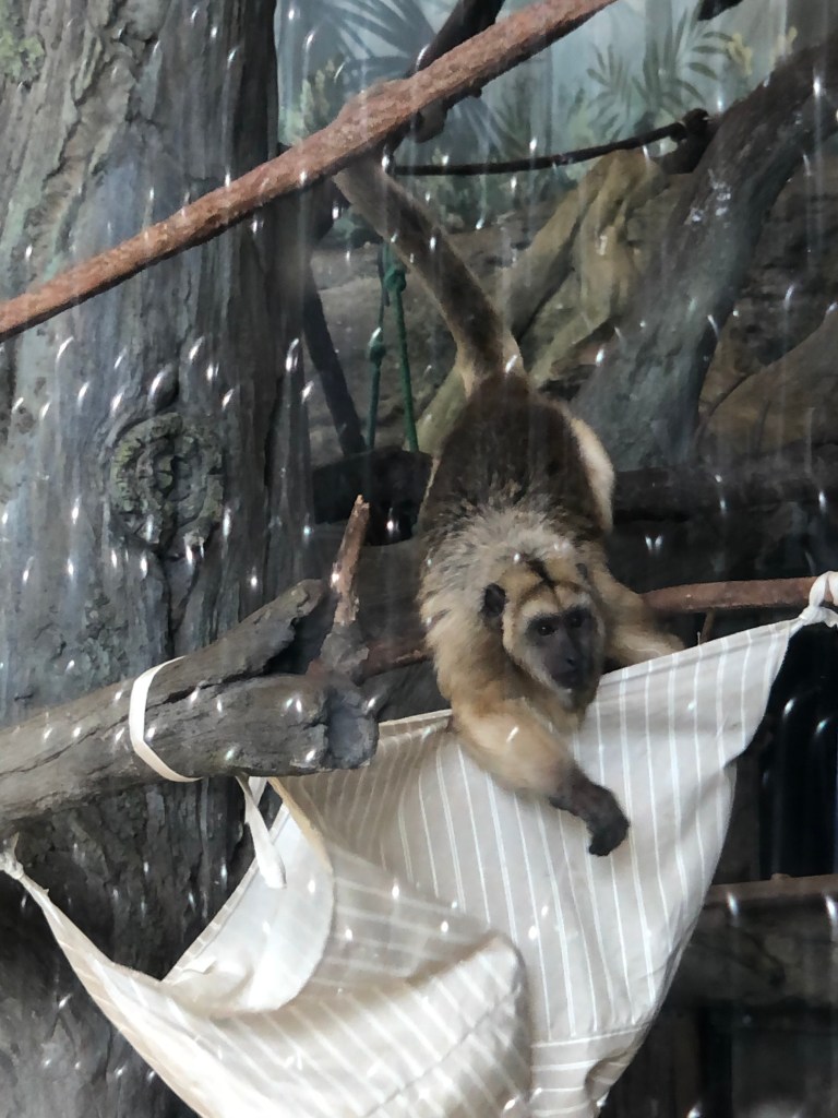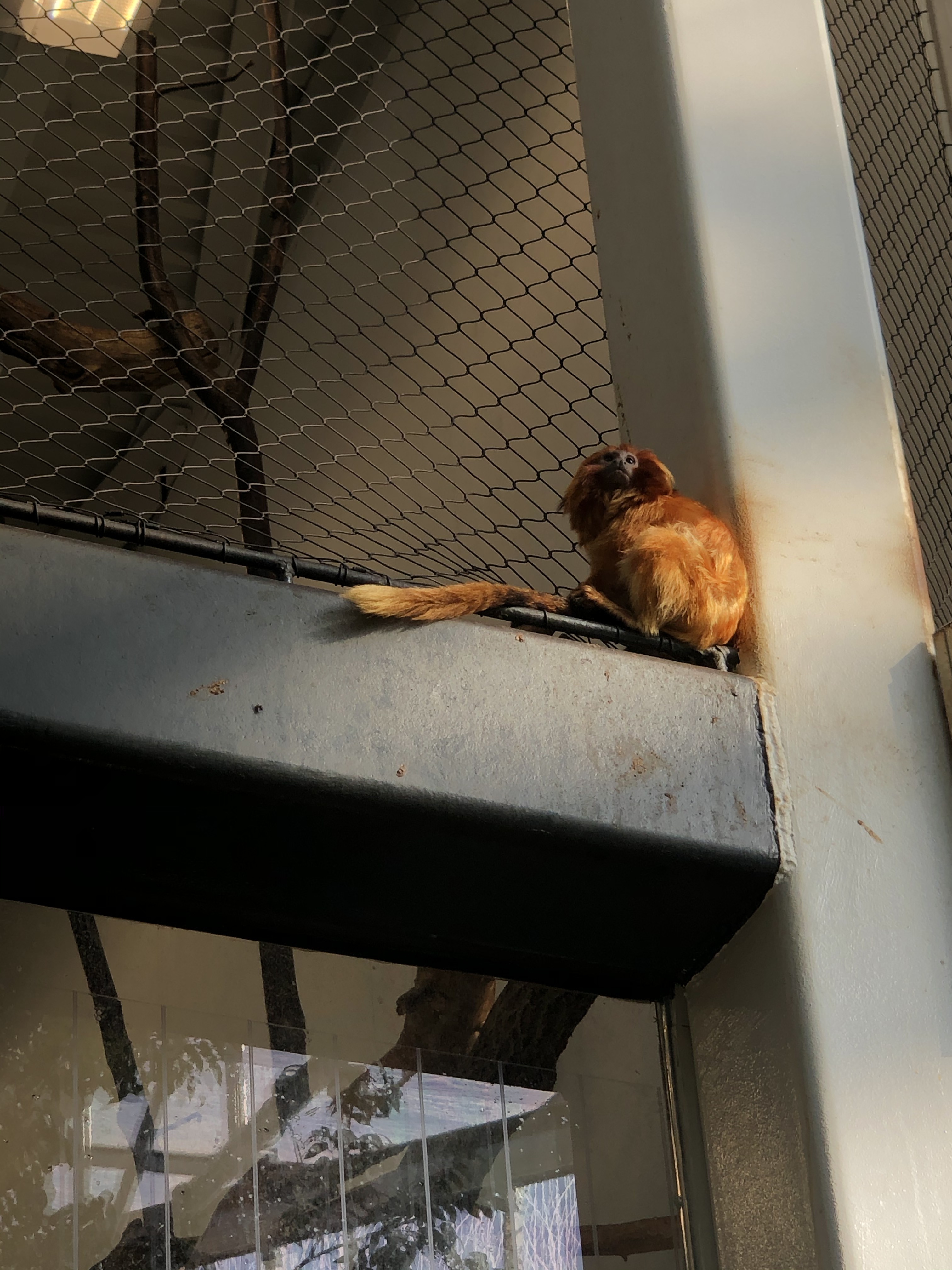 My second favorite were probably the monkeys. They had two different areas of monkeys – one in the Faces of the Rainforest exhibit and one not too far from there in their own exhibit. The Faces of the Rainforest is a huge exhibit for not only monkeys, but all kinds of animals in the environment. Apparently the monkeys in that exhibit are free roaming, because we saw a little monkey at the top not in the cage. I guess they’re just smart enough to know not to leave? The monkeys in the second exhibit were very active, swinging all along inside and giving us a great show to watch.