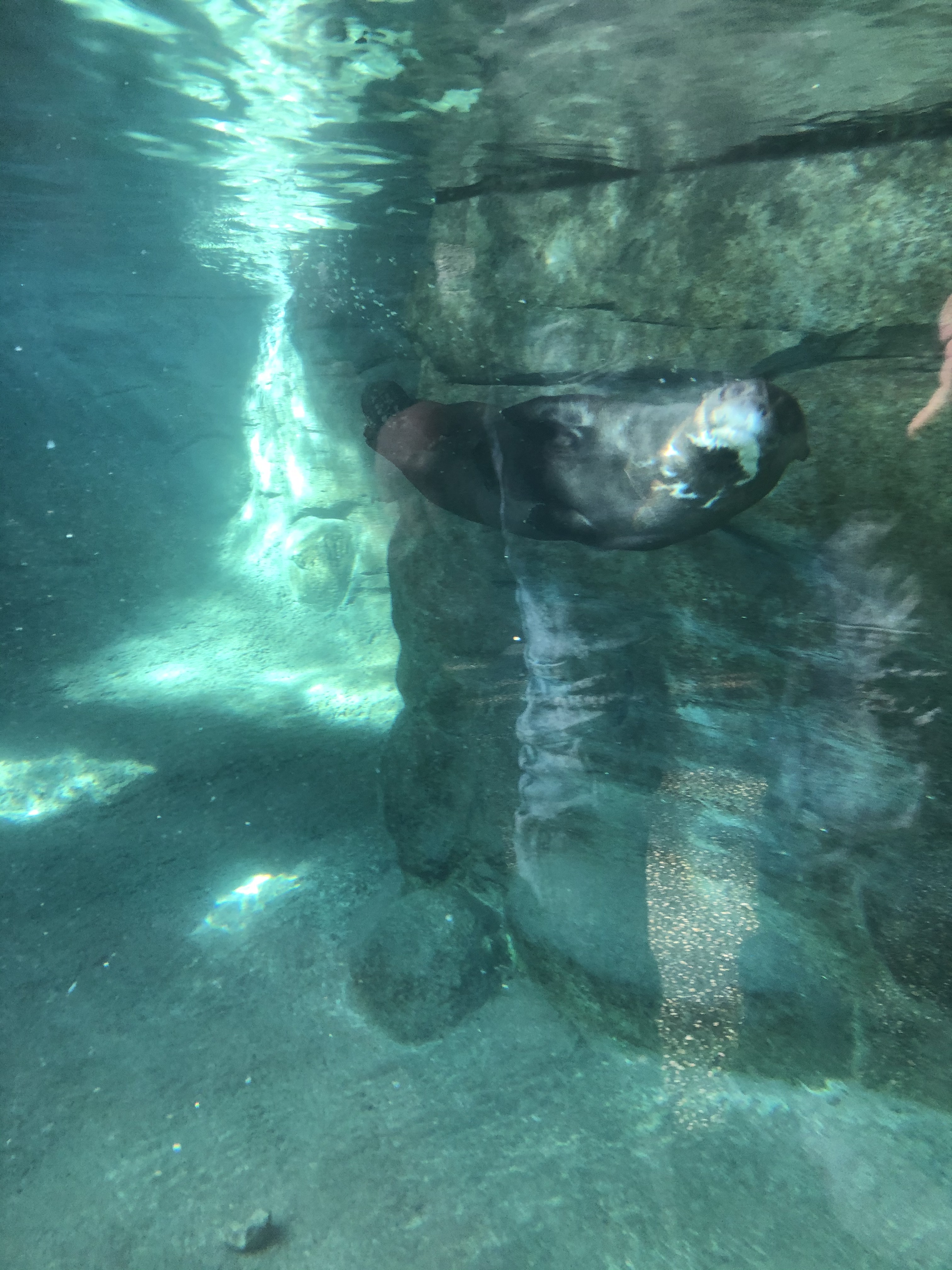 We saw giraffes, elephants, seals, monkeys, goats, and cheetahs! About half of the animals were active, moving or running around their exhibits, while the other half were just relaxing in the shade or soaking up the sun. At first the elephants weren’t out, but once we finished the path we looped back around again, and all of them were out! We stayed watching them for quite some time, as one of them was eating hay out of an elevated bin. It was quite amusing to watch her dig into the barrel with her trunk to grab the hay, lower it down and move it to the end of her trunk, and then lift it into her mouth to eat. Fascinating animals for sure.