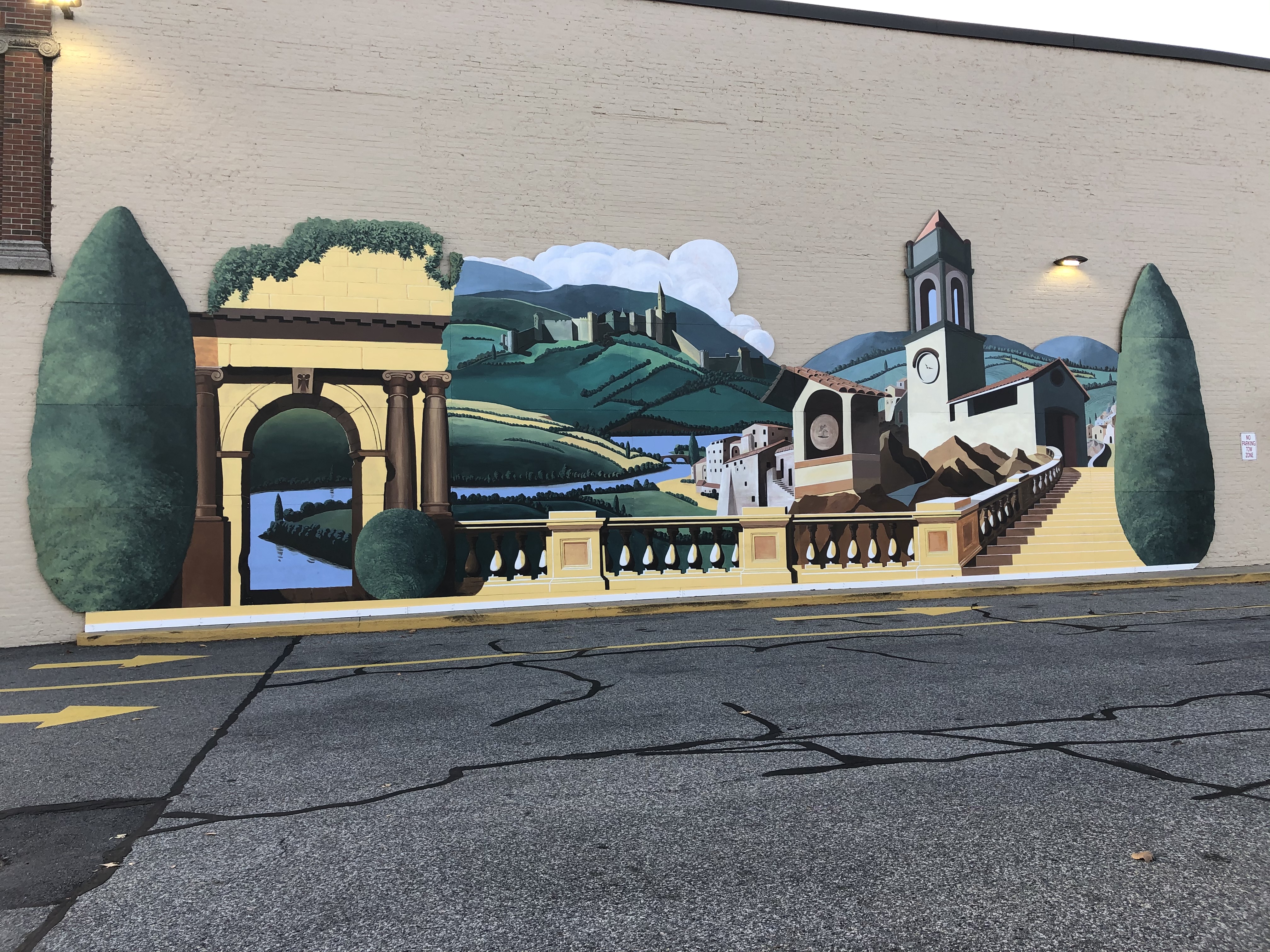 Shortly after lunch, we walked all over main street trying to find this square and fountain. After many trips up and down the street, we realized the fountain was covered and the square area was filled with tables for the neighboring restaurants. *rolls eyes* Another thing thanks to COVID.