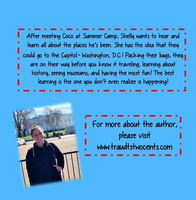Shelly, the main character from Shelly Goes to Summer Camp, is on her next adventure — this time, to Washington, D.C.! She’ll be sightseeing all over The Capitol with her good friend, Coco, while he teaches her different fun facts or history about the area! It’s interesting I’ve decided to take the traveling/educational route with my books as geography and history were my two most disliked subjects in school. Guess when you don’t like how something is taught, you try to change it 😉