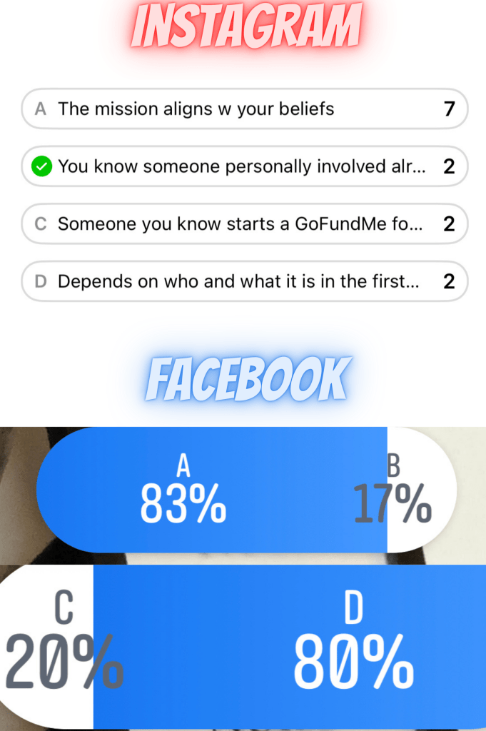If you follow me on social media, you’ve probably noticed I’ve been posting videos about a care package project I’m working on. 2 weeks ago I held a poll on my Instagram and Facebook Stories about charities. I was curious to see how many people are involved in charities, and in which ways. I thought posting to both IG and FB would be best as the demographics differ. My IG is mainly peers while my FB is mainly family/friends. While there is some overlap, I know not everyone I’m friends with follows me on both platforms. My findings are as follows: