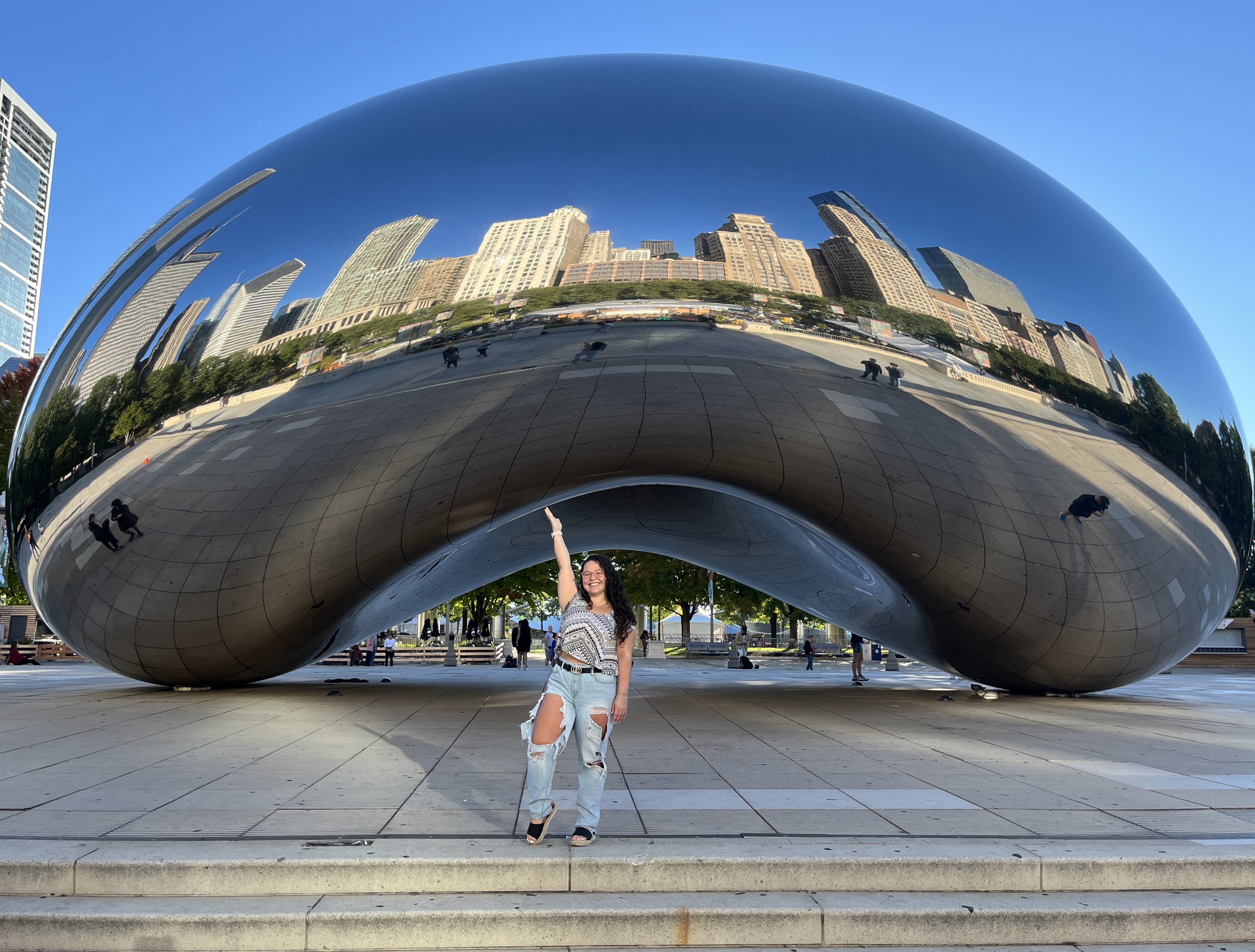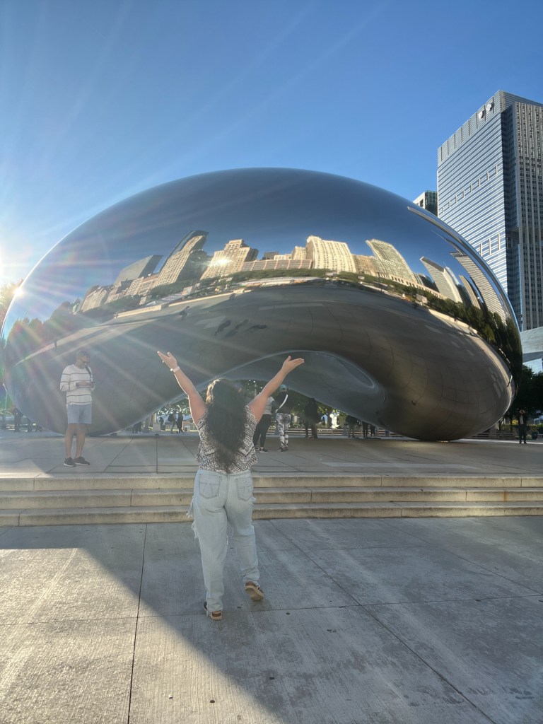 After about 5 hours of sleep, I was up and at ‘em getting ready to take on downtown Chicago! I was hoping to be getting to Cloud Gate aka The Bean early morning/sunrise to try and beat the crowd, but did not account for a one hour commute to the city via public transit so I hopped on a 7am bus. In case you were wondering, my bus pass still isn’t scanning from my phone or my watch, and I happen to just be getting people who either don’t care or don’t realize (thankful for that). It’s a bit chilly this early in the morning at a crisp 50 degrees, and I’m so thankful I brought my sweatshirt because I almost didn’t. It should get up to mid 60s later which I imagine feels just perfect when the sun hits.