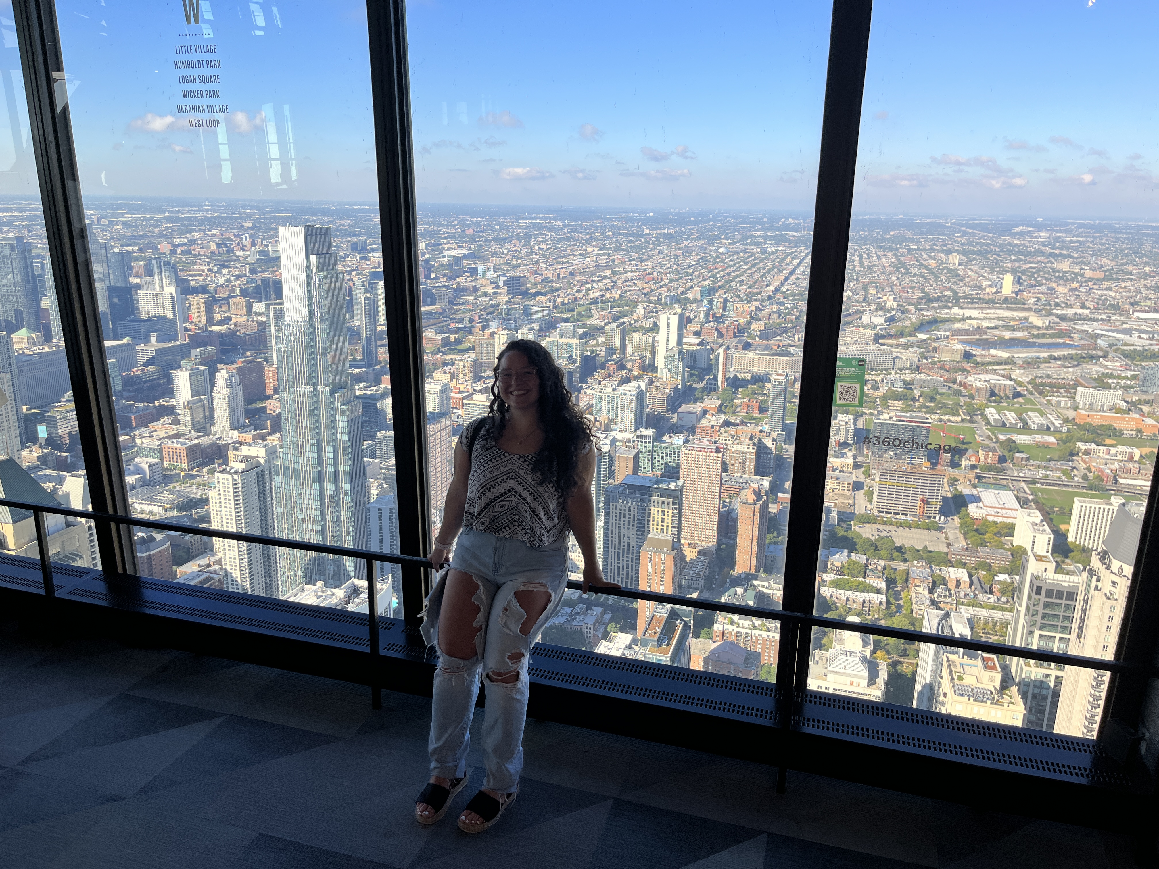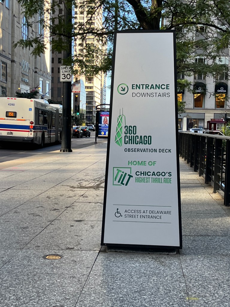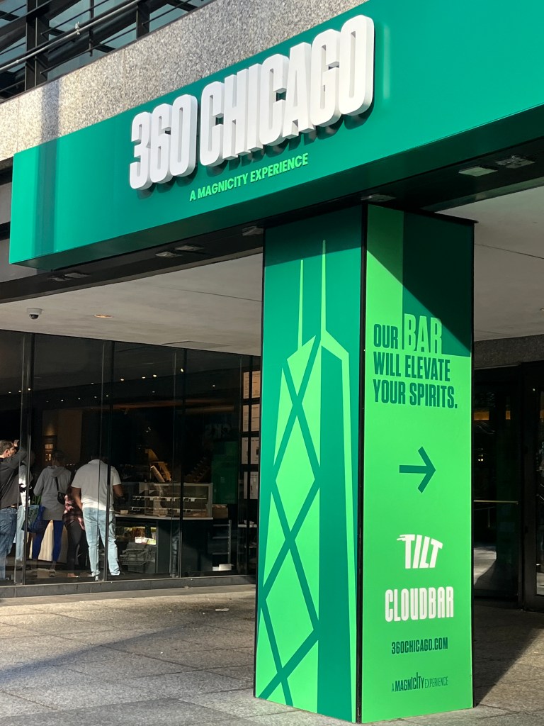 I’m on my way to my next stop – 360 Chicago Observation Deck. I’ve done a handful of observation decks before, but this one has a TILT ride. That is exactly what it sounds like. A set of glass panes, that you lean up against, TILTS YOU, on the side of the skyscraper. A couple months ago I posted on my Instagram story to try and decide between this observation deck or another that has a glass walkout. 360 won, and for some unknown reason, I decided I’d be tilting over the edge today. Builds character, right?