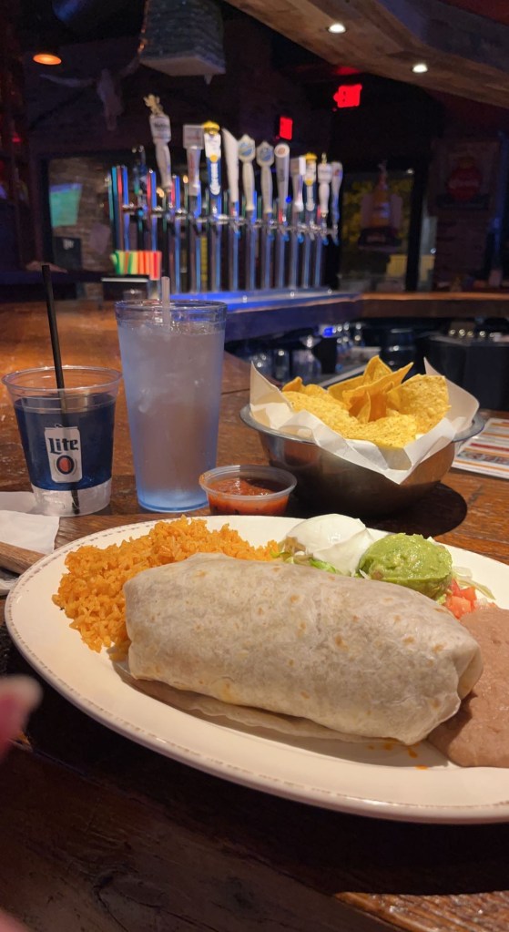 I took my last drink to go and started walking the pier. According to all the Chicago souvenirs I’ve seen, this is the Windy City, and they’re not lying. I switched into my sweatshirt that I’m again so thankful I brought with me, and even that wasn’t enough. I walked around for a little before deciding I needed to find some real food and head home for the night. I was hoping it’d be quick, but the closest place I could find that was open was a sit down restaurant so I ordered a burrito while I looked up my route to get home.