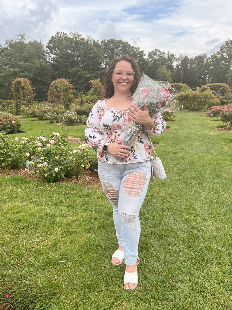 I would often think about how it was going to happen, where it would happen, and what exactly would happen, and I could never truly come to an answer. The answer ended up being at Elizabeth Park in West Hartford, a place Noe and I often talked about going to but never did. They have a rose garden and Noe and Tarrine (our neighbor) worked on setting up one of the archways with some heart shaped balloons and paper bags that spelled out “Will You Marry Me?”.