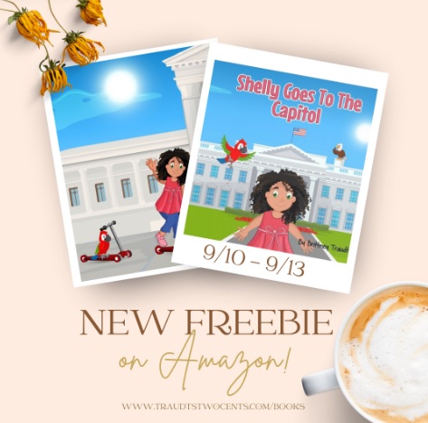 If you want to get ahead of the game and start reading the series now, you can always order paperback copies on my website, where you also get the book signed and receive stickers and a worksheet. They are also available on Amazon in paperback or Kindle, which speaking of, you can download the 2nd book Shelly Goes to the Capitol FOR FREE today through Friday!