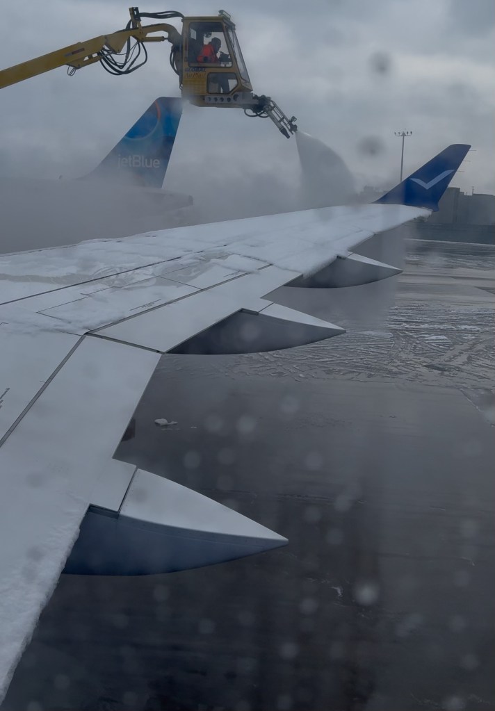 Finally, a plane arrived, crew got on, and we boarded! Then we taxied for a while… then had to get de-iced… so we may have left later than the time we were supposed to arrive, but better late than never right?