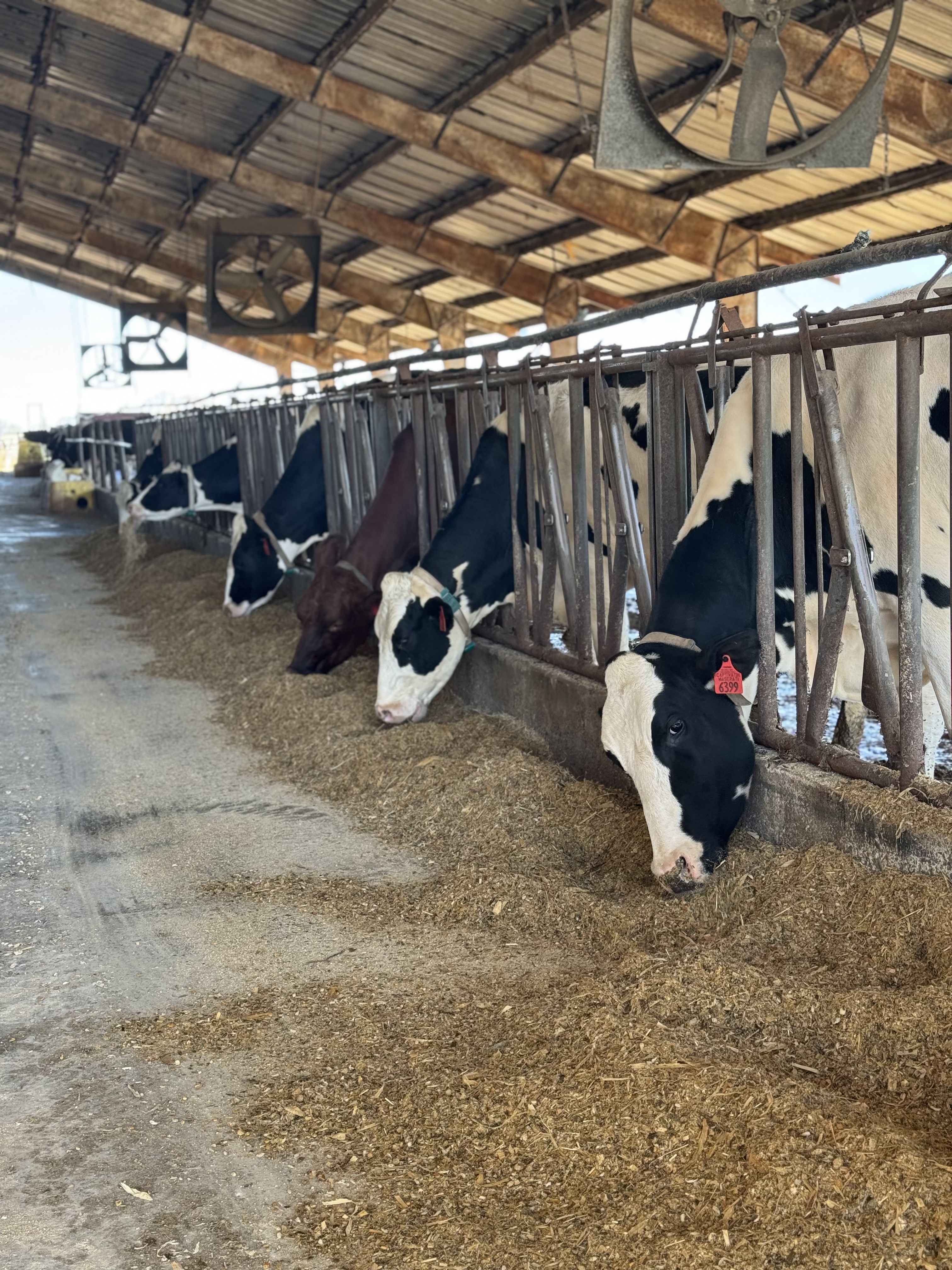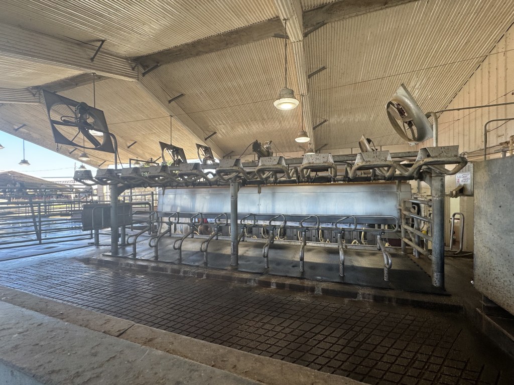 We then went into their milking parlor, which sort of resembles roller coaster seating. They milk 75 cows at a time, 3 groups in a sitting, twice a day. The cows come in, go to their stations, place their head in the rest, and after the utters are prepped, they attached a milking “machine” to them where they get milked for 10-15 minutes. The cows also wear a necklace type device, she called it a Cow Fitbit, that tracks all their vitals and details. They know when their cows are in heat, how much their milk weighs, how active they are, and more. Using that information they can detect if something is wrong with the cows. It was all pretty neat!