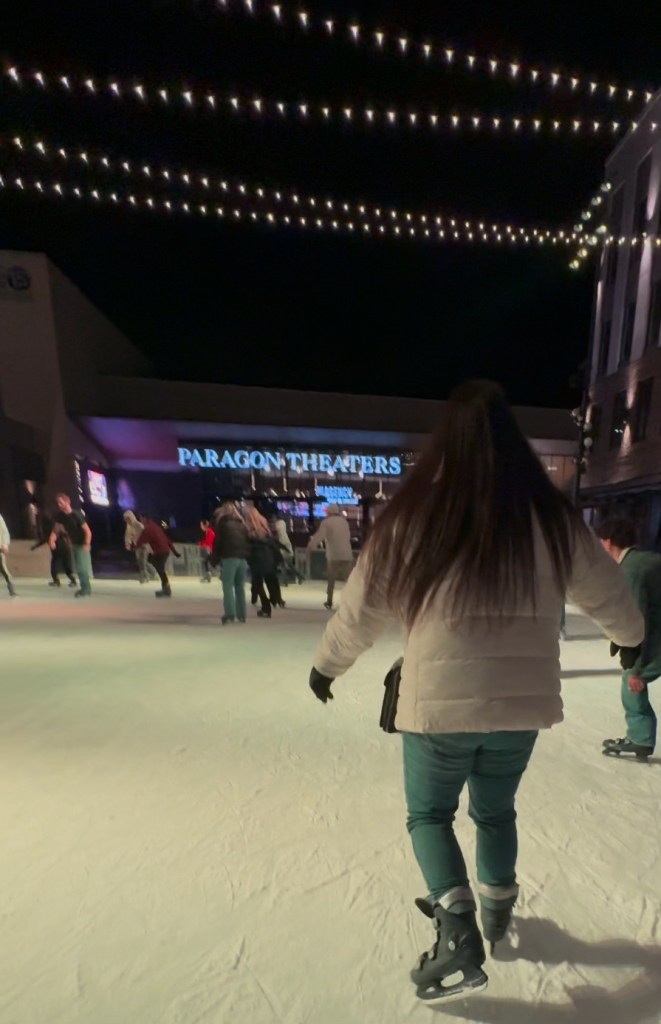 I’ve gone ice skating a few times, but Izzy hasn’t gone since she was a kid. We checked in, got our skates, and headed towards the rink. These skates weren’t your typical lace up ones, which I find very odd. They were buckle type ones, similar to snowboarding shoes. I’ve never seen anything like it, and I think I probably should’ve sized up because they were quite tight.
