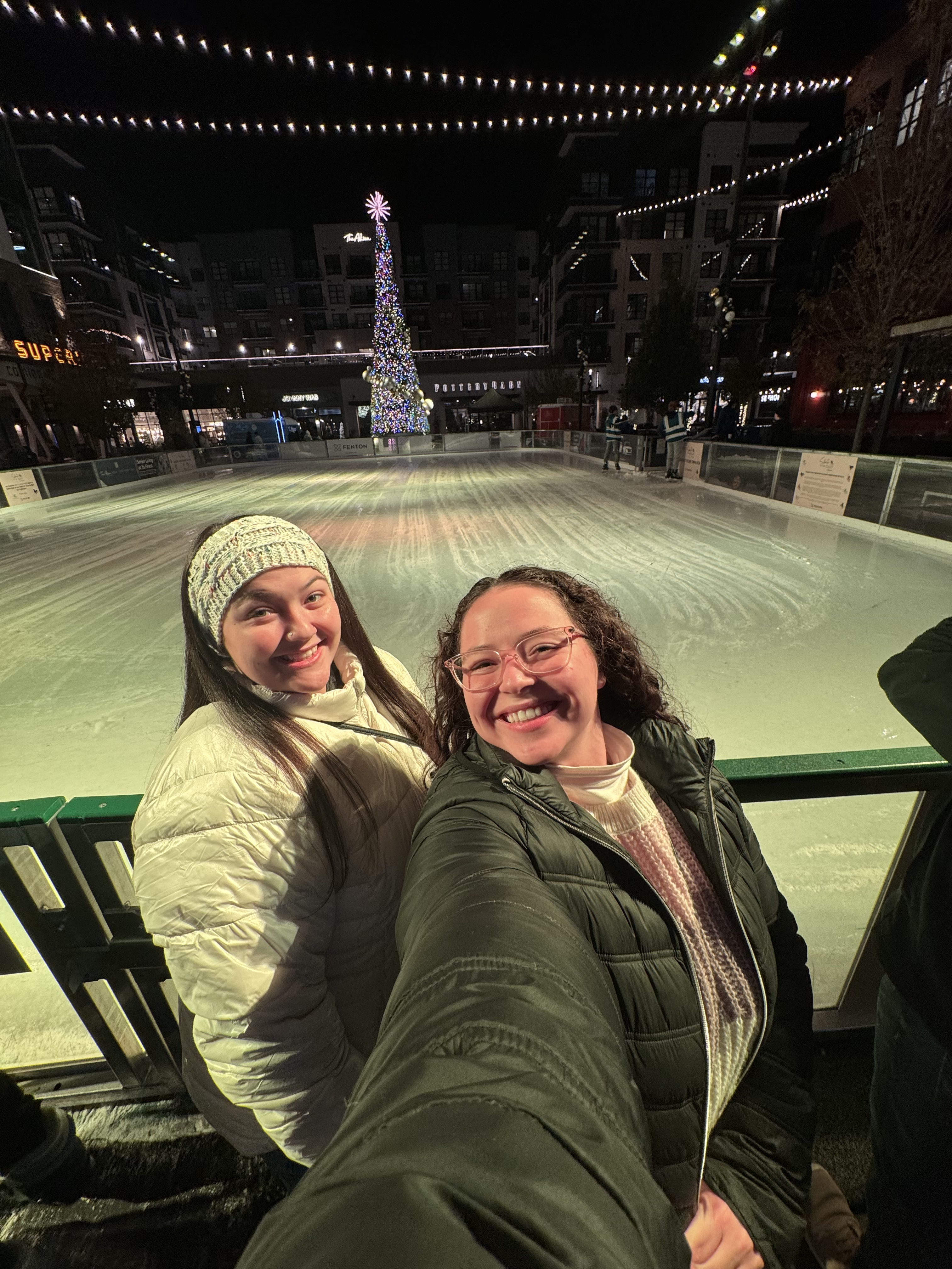 No one fell and we did a decent amount of laps. It was a great time, and we had so much fun! Once our time was up, we walked around the mall for a bit. They had a huge Christmas tree next to the rink, so our course we took some pictures. We’ve come to the realization there isn’t much going on, so we headed back to hotel.