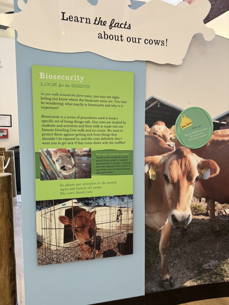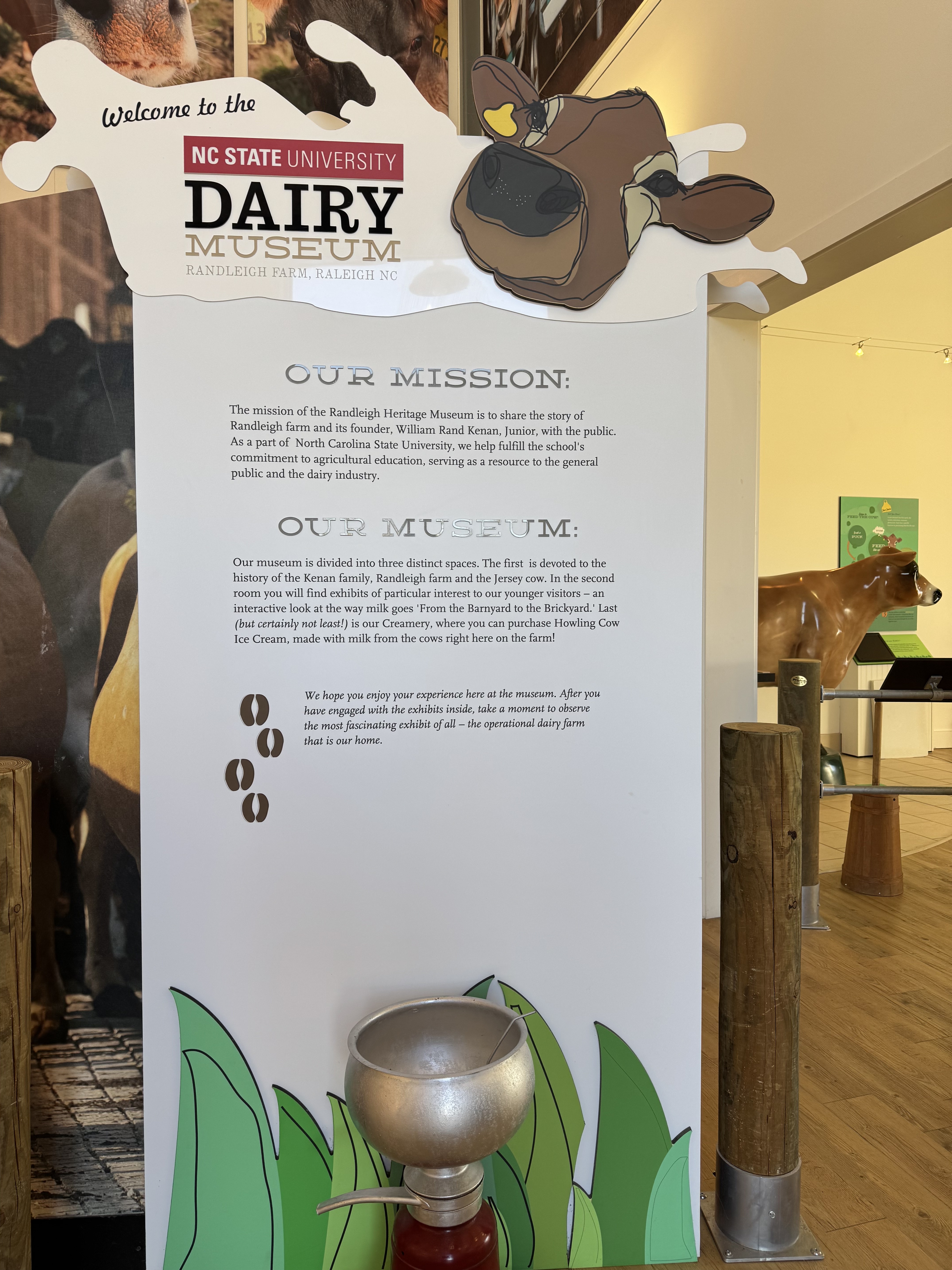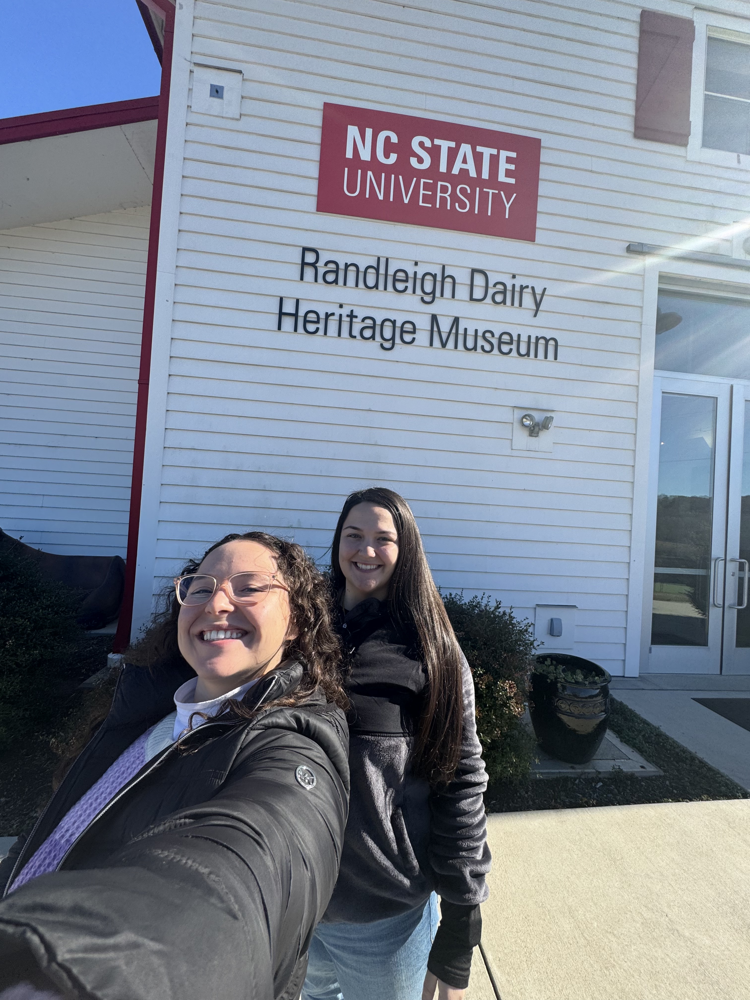 After stopping at Panera to pick up some breakfast, we were on our way to the NC State Randleigh Dairy Heritage Museum! NC State owns this dairy farm where they have over 300 cows they use to make milk and ice cream. They offer a tour of the farm, and we happened to be the only 2 people who signed up for it this morning!