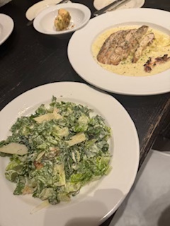 The rest of our day was pretty open since we didn’t have anything planned until ice skating later tonight. We figured maybe we’d get something to eat and hang out downtown for a little to see what we could find. We went to Gravy which, surprisingly, is an Italian restaurant. I got the Chicken Alfredo, Izzy got Chicken Parm, and then we shared a Caesar Salad. It was delicious, but very filling.