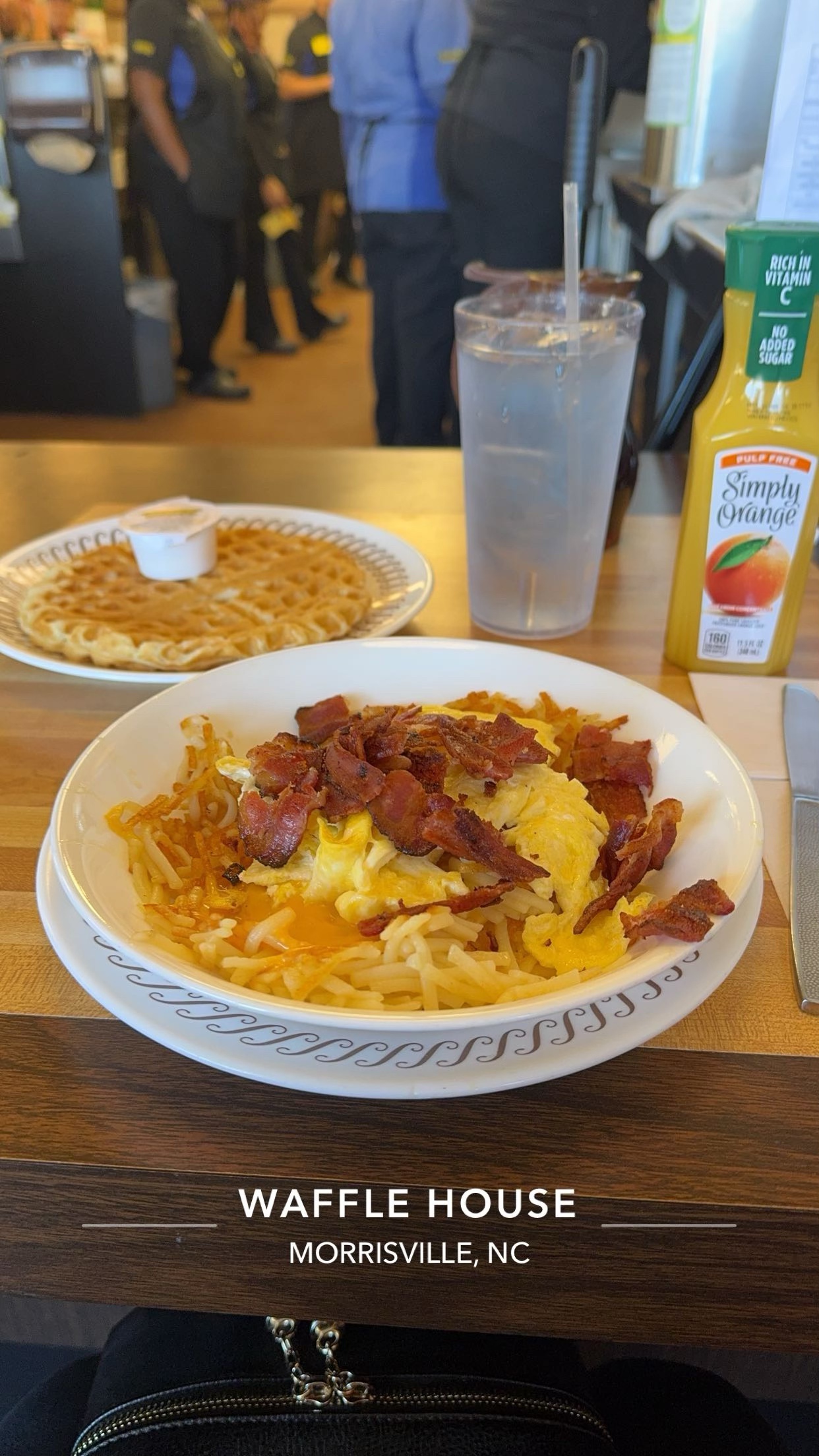 We sat at the bar, ate delicious breakfast bowls and waffles, and walked back down to our hotel. Shortly after we left Waffle House, I got a text from Cracker Barrel that we were getting sat. So in the time it would’ve taken us to even get a seat there, we had walked, waited, sat, ordered, ate breakfast, and were walking back to our hotel. It appears we definitely made the right decision.