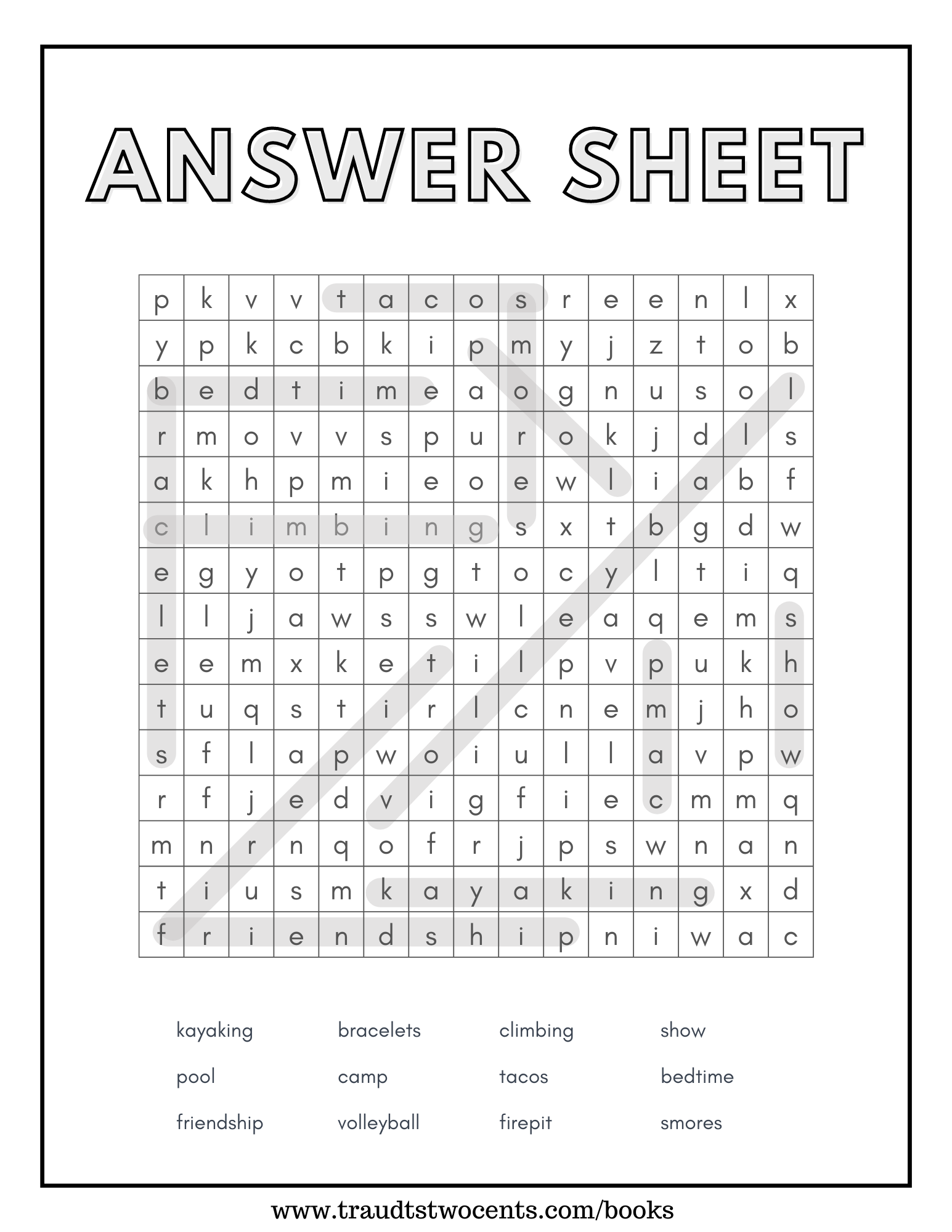 Summer Camp Worksheet! Find all the activities Shelly did while she was at Summer Camp with the worksheet below! Don’t worry if you can’t find one, you can download an answer sheet as well 😉 Shelly Goes to Summer Camp Word SearchDownload Answers for Shelly Goes to Summer Camp Word SearchDownload Share this: Click to share on X (Opens in new window) X Click to share on Facebook (Opens in new window) Facebook Like Loading...